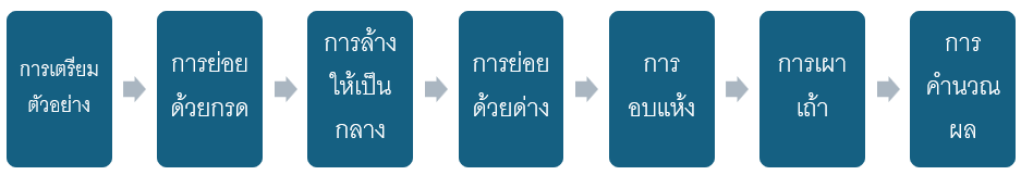 ซึ่งกระบวนการวิเคราะห์โดยทั่วไปของการวิเคราะห์ Crude fiber ประกอบด้วยหลายขั้นตอน เช่น